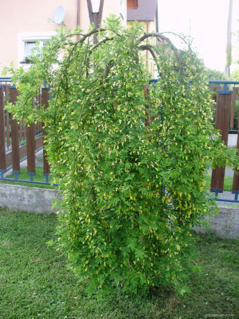 Caragana arborescens, allgemein bekannt als Erbsenbaum, ist ein langlebiger und schnell wachsender Strauch oder kleiner Baum, der zur Familie der Hülsenfrüchte gehört. Die Merkmale dieser Sorte sind wie folgt:
