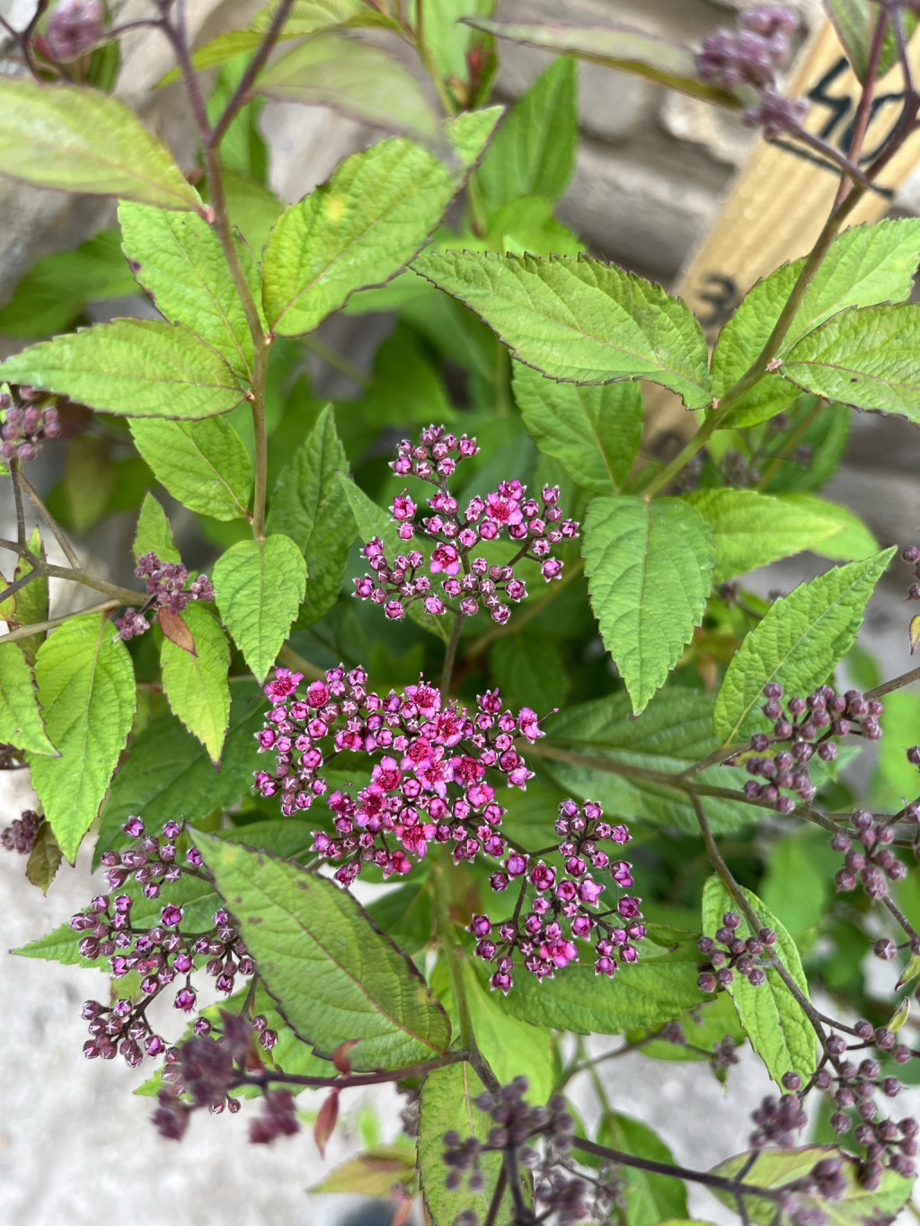 - **Blüte**: Im frühen Sommer erscheinen zahlreiche, lebhaft rosa Blüten in flachen, schirmartigen Blütenständen. Die Blüten ziehen Bienen und Schmetterlinge an.