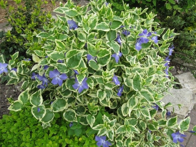 4. **Verwendung**: Die Vinca major 'Variegata' wird häufig als Zierpflanze in Gärten, Blumenbeeten und schattigen Bereichen verwendet. Sie ist auch als Bodendecker beliebt, da sie schnell wächst und eine schöne Optik bietet.